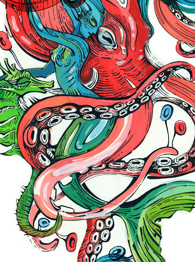 "TENTACLE COCKTAIL" High Waist Leggings (Women)